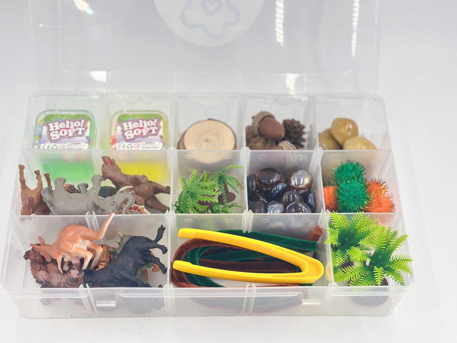 We believe that true learning happens through the senses, which is why we carefully select a rich variety of high-quality, durable materials. Each kit is intentionally curated to spark curiosity and support sensory development. While the contents of each theme rotate, you can expect to find a thoughtful mix of items such as: