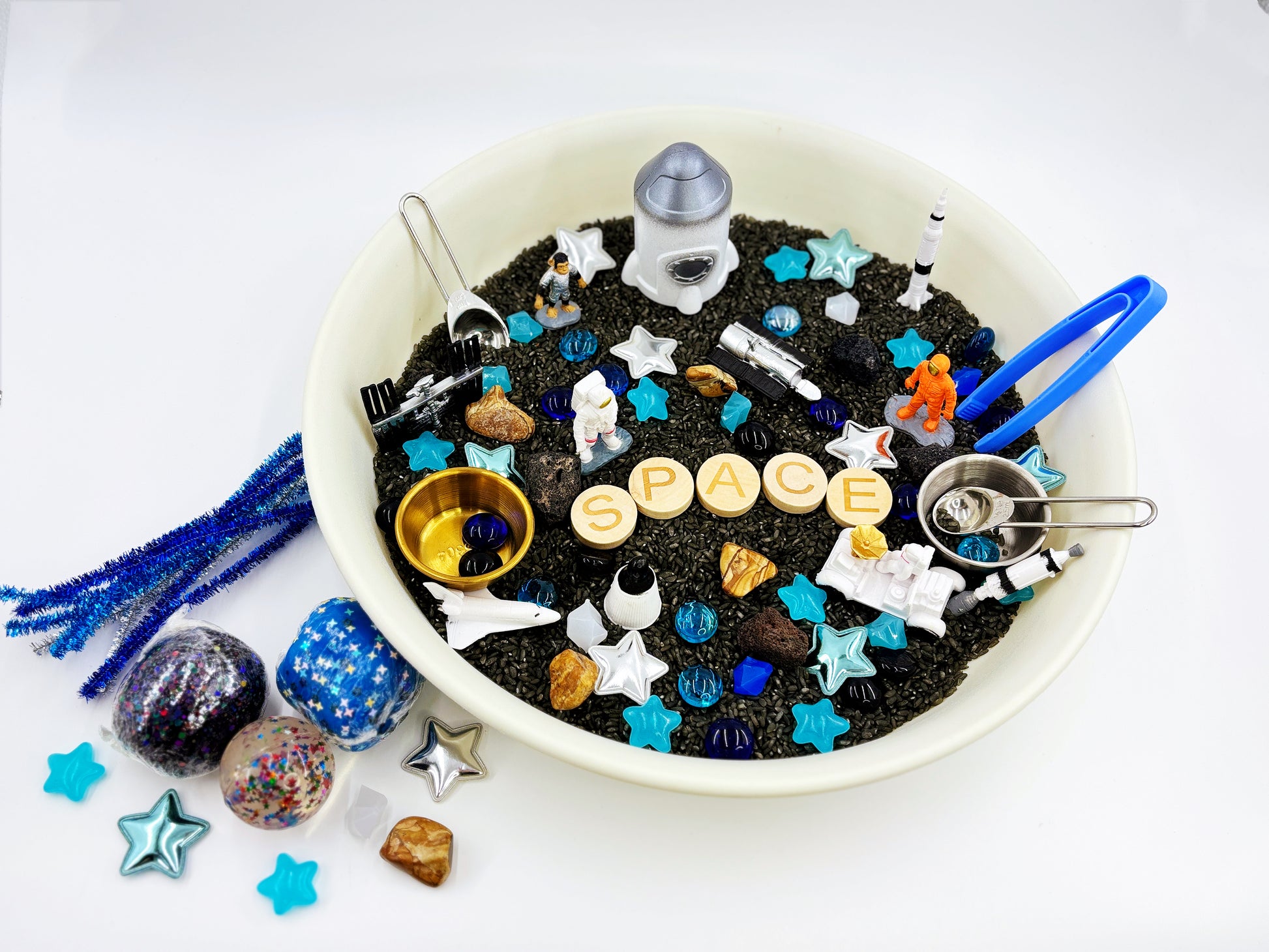- Textural & Building Items: Colorful gems, bamboo sections, kinetic sand, or handcrafted dough.